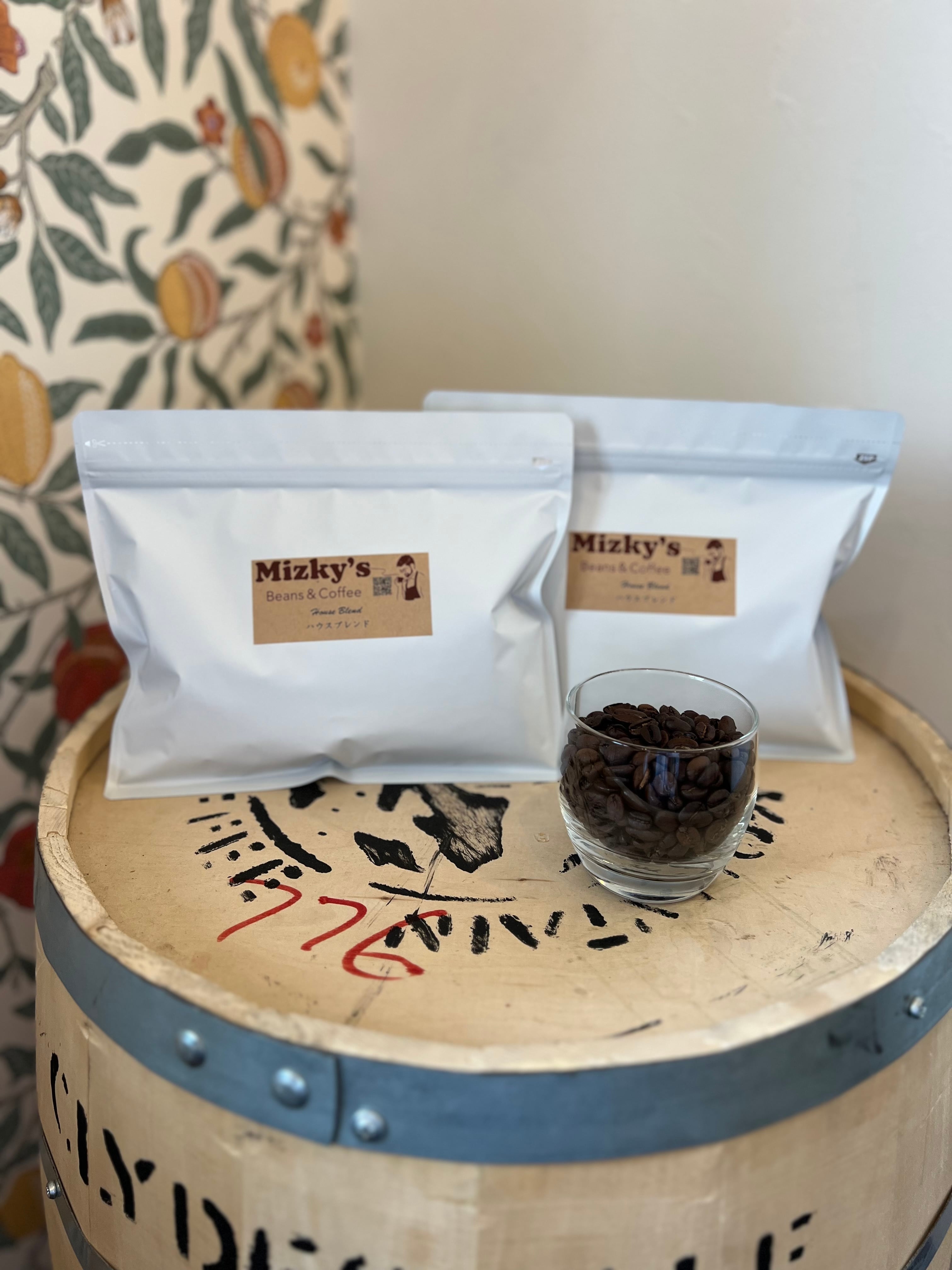 ハウスブレンド(中煎り。粉の場合は中挽きです):コロンビアとインドネシアの最高グレードを丁寧にハンドピックした、香ばしくも心地よいコクと苦味が感じられるコーヒー。